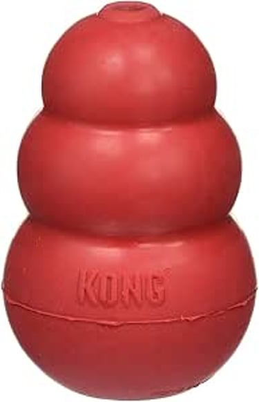 The traditional Kong is a classic for a reason. It’s perfect for freezing food inside and giving it to Arthur on hot summer days — instant relief and happiness.